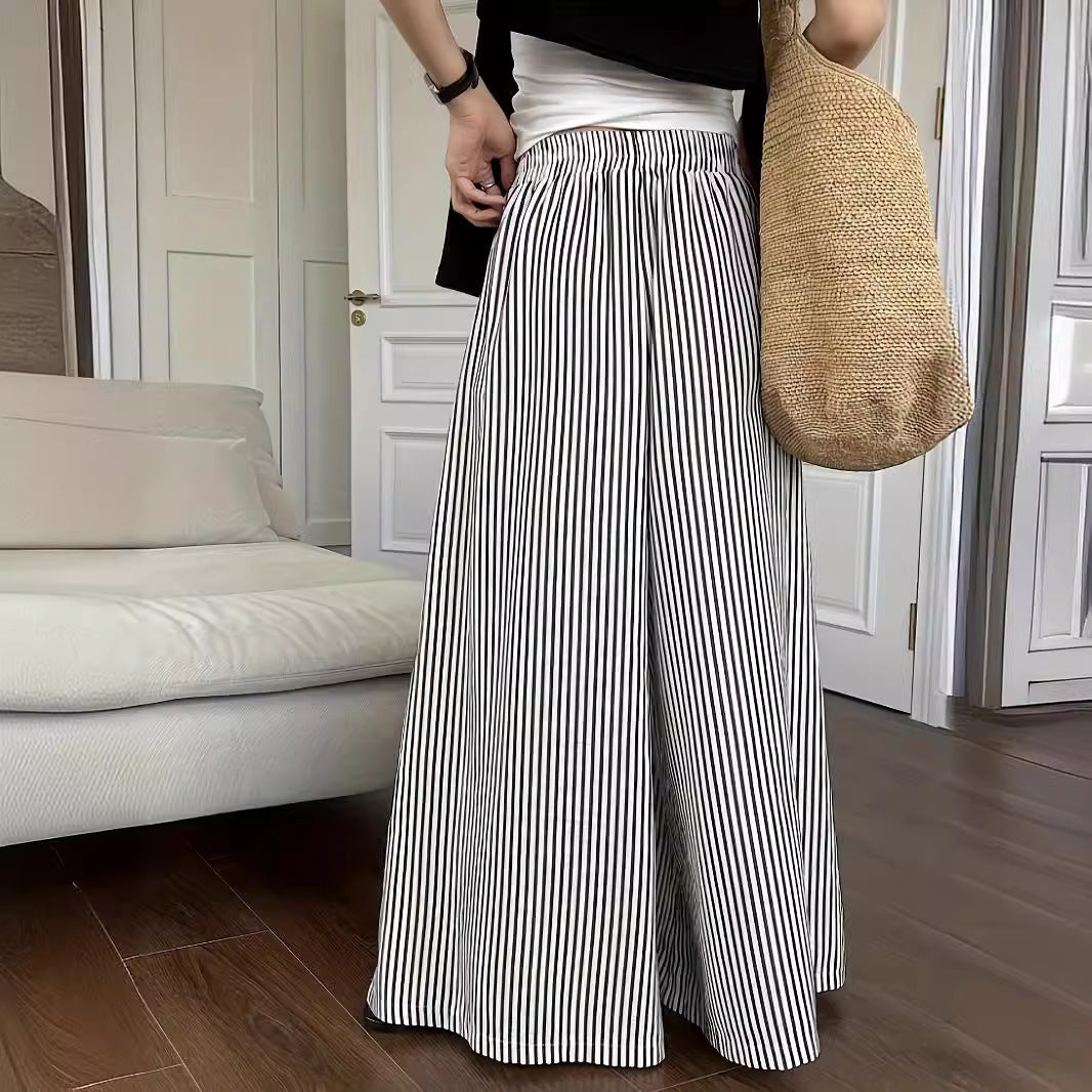 Leisure Striped Elastic Waist Wide-leg Draggle-tail Trousers